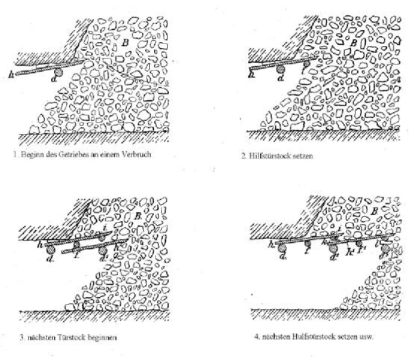 | 16:38, 24. Jun. 2012 | Abb 085.jpg (Datei) | 719 KB | Markscheider | Abbildung 85: Ausführung der Getriebezimmerung Aus [30] Benennung der Bauteile: B) lose Massen; h, h1) Getriebepfähle (vorn abgeschrägte dicke Bretter); d, d1) Haupttürstöcke; f, f1) Hilfstürstöcke; i) Pfändeholz; k) Zwickkeile; l) Pfändekeile… | 1 | |
