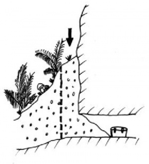 Das Anlegen eines größeren Schürfgrabens mit nachfolgender regelgerechter Getriebezimmerung empfiehlt sich dort, wo ein unter mächtiger Auffüllung verborgenes Mundloch dauerhaft freigelegt werden soll (zum Beispiel Nachnutzung durch Verein, museale Zwecke und so weiter). Will man nur einmal in den Stollen hineinschauen oder hat einen Grund, den Zugang zu verbergen, teuft man einen kleinen Schurfschacht im Knick zwischen flacher Stollenpinge und Hangkante (siehe obere Abbildungen) bis auf den Stollen ab.